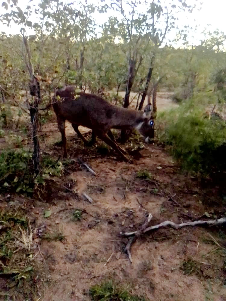 When they got to the spot where the dogs were barking, they found a waterbuck caught in a snare. He denied that they were poaching and did not know who had set up the snare.