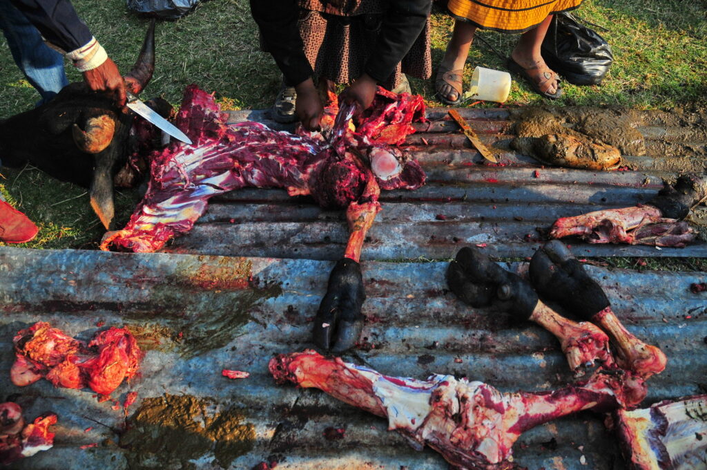It wasn’t just music that kept attendees to the cultural festival but kilograms of meat that was cooked or roasted on open fires. Photo: Lucas Ledwaba