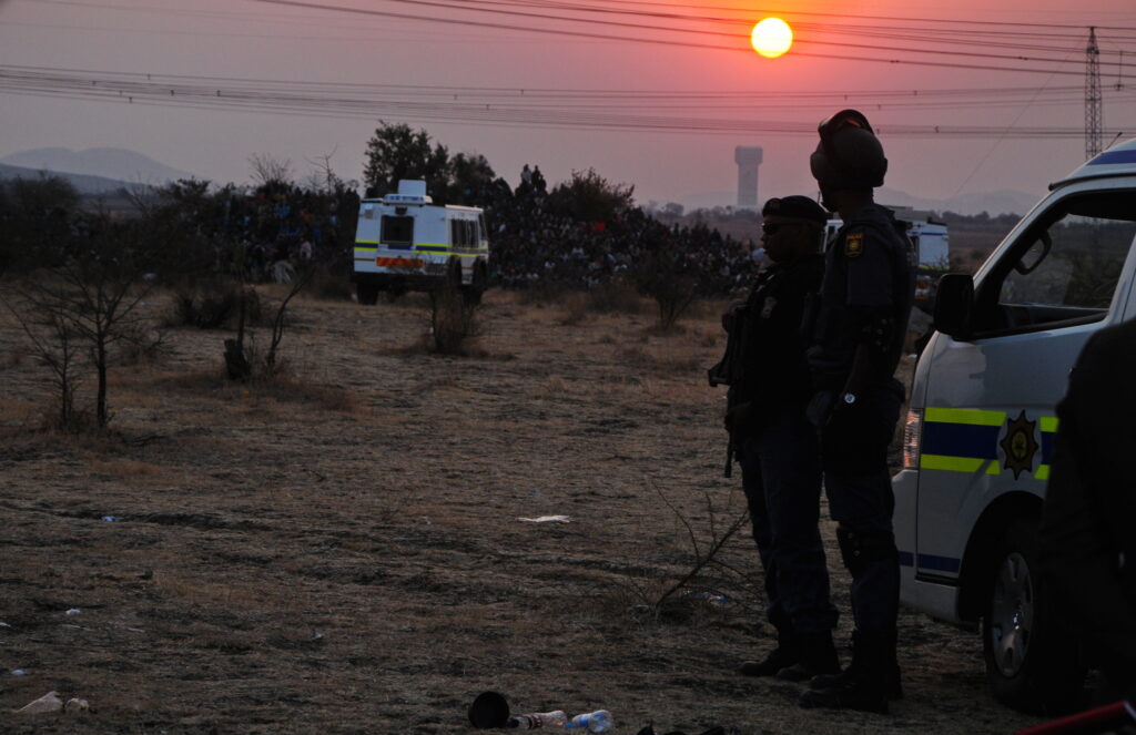 15 August – Workers continue to gather at the koppie. More police reinforcements are brought in. Union leaders arrive to try and convince the strikers to lay down their weapons and disperse. Attempts to broker a deal go on after sunset with no success.