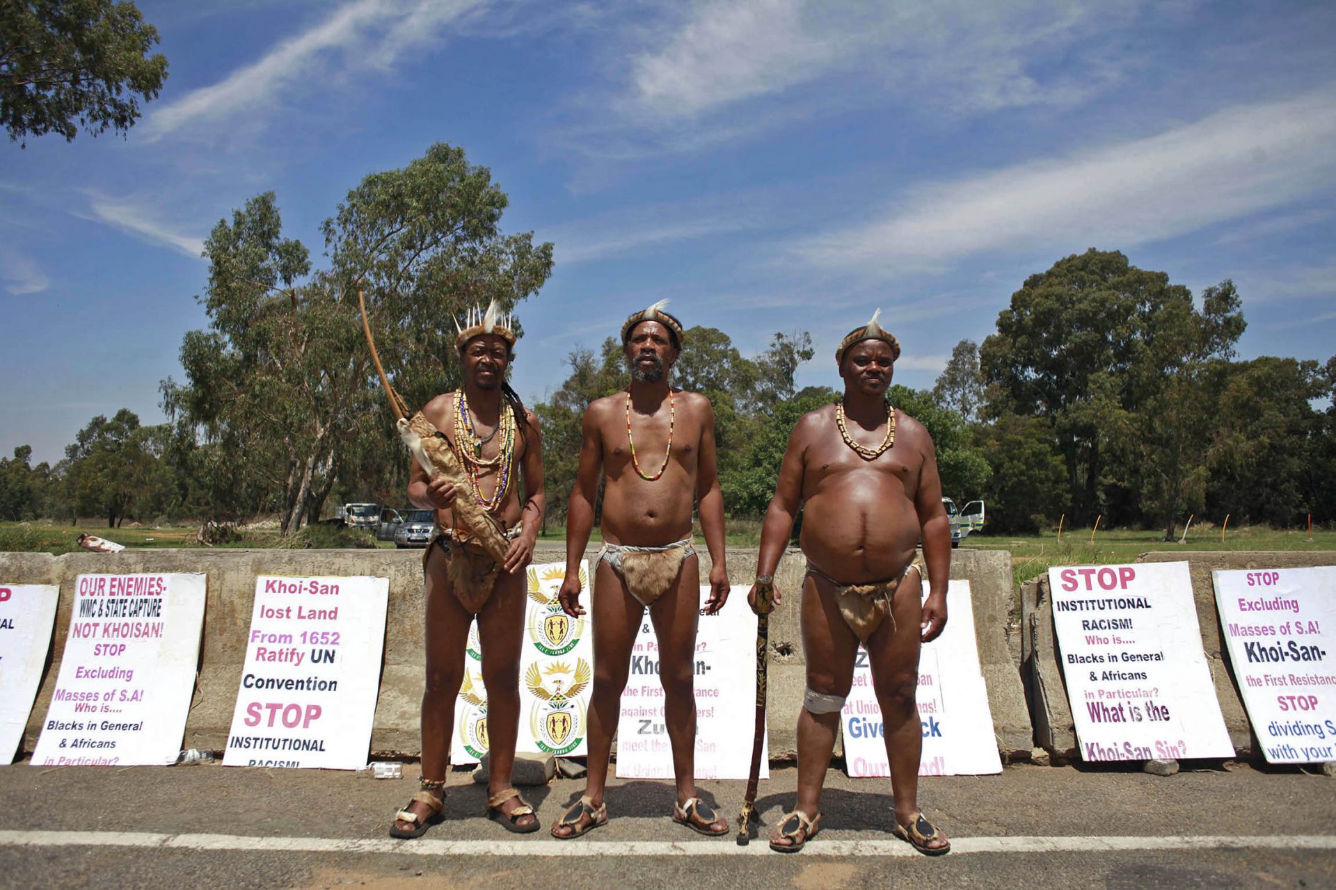Khoi-San leaders protesting on the sidelines of the ANC's 54th national conference at Nasrec. Photo: Oupa Nkosi