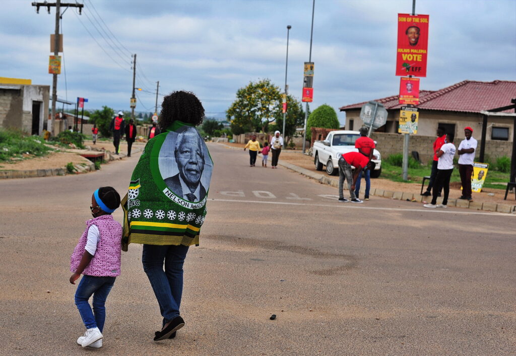 Election authority staff wearing protective gear assist a voter check her details on the voters roll. Photo: Lucas LedwabaA woman walks in the streets of Luthuli Park after casting her vote on Wednesday morning accompanied by a little girl who appeared confused about the hype around her. Photo: Lucas LedwabaA voter gets inked by IEC staff wearing covid-19 protective gear in ward 14, Luthuli Park. Photo: Lucas LedwabaThe battle for votes was evident on the street lamp posts as parties vied for the attention of voters in Luthulli Park. Photo: Lucas LedwabaANC candidate Thomo Raymond Manyaka’s posters lined up along a street in ward 14 of the Polokwane municipality. Photo: Lucas LedwabaA voter casts her ballot under the watchful eye of IEC staff in Luthuli Park, Seshego in Polokwane. Photo: Lucas Ledwaba