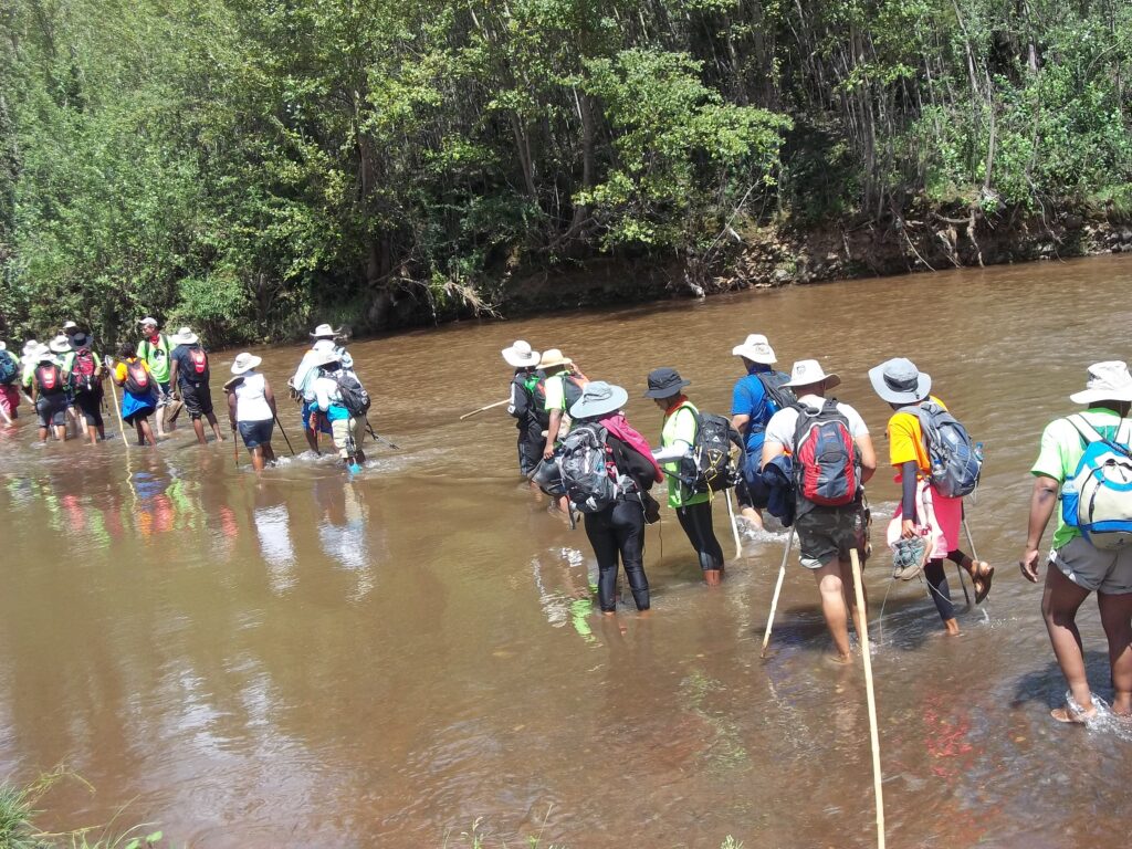 Participants in the Moshoeshoe Walk face daunting challenges such as wading through icy cold water. Photo: Shoks Minisi Mzolo