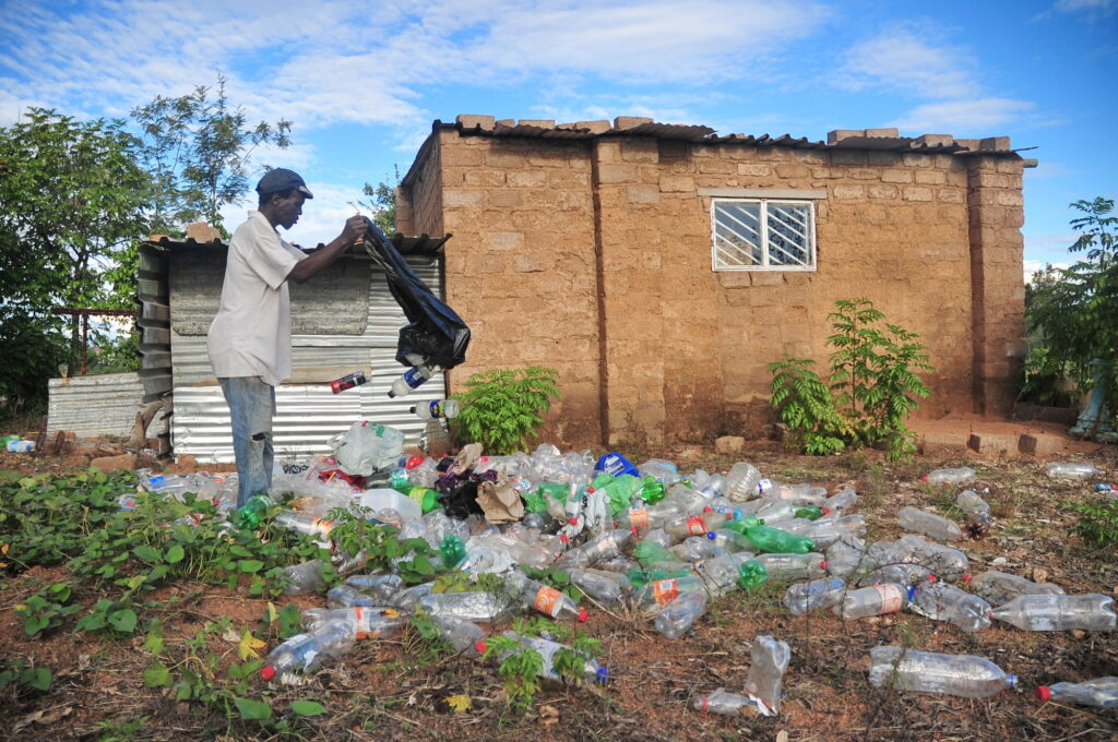 Masakaneng resident Nkwana Ramoabe Kgaphola travels daily collecting empty containers which he uses to store water and to make fire for cooking and heating water…