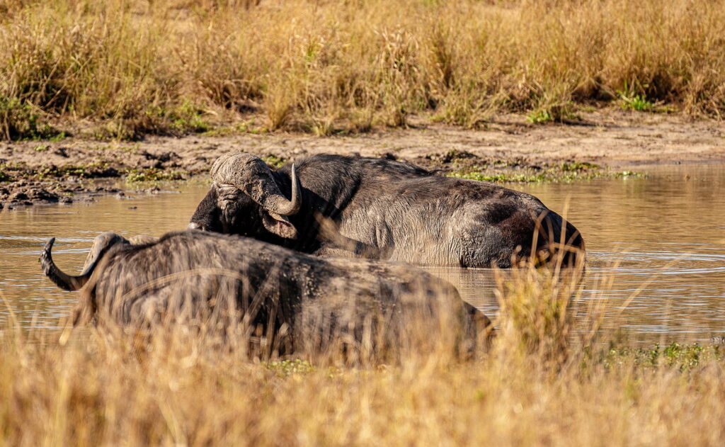 We were nearing the end of our walk along the dry Sweni river when about 300 metres ahead of us, we saw an elephant quenching…