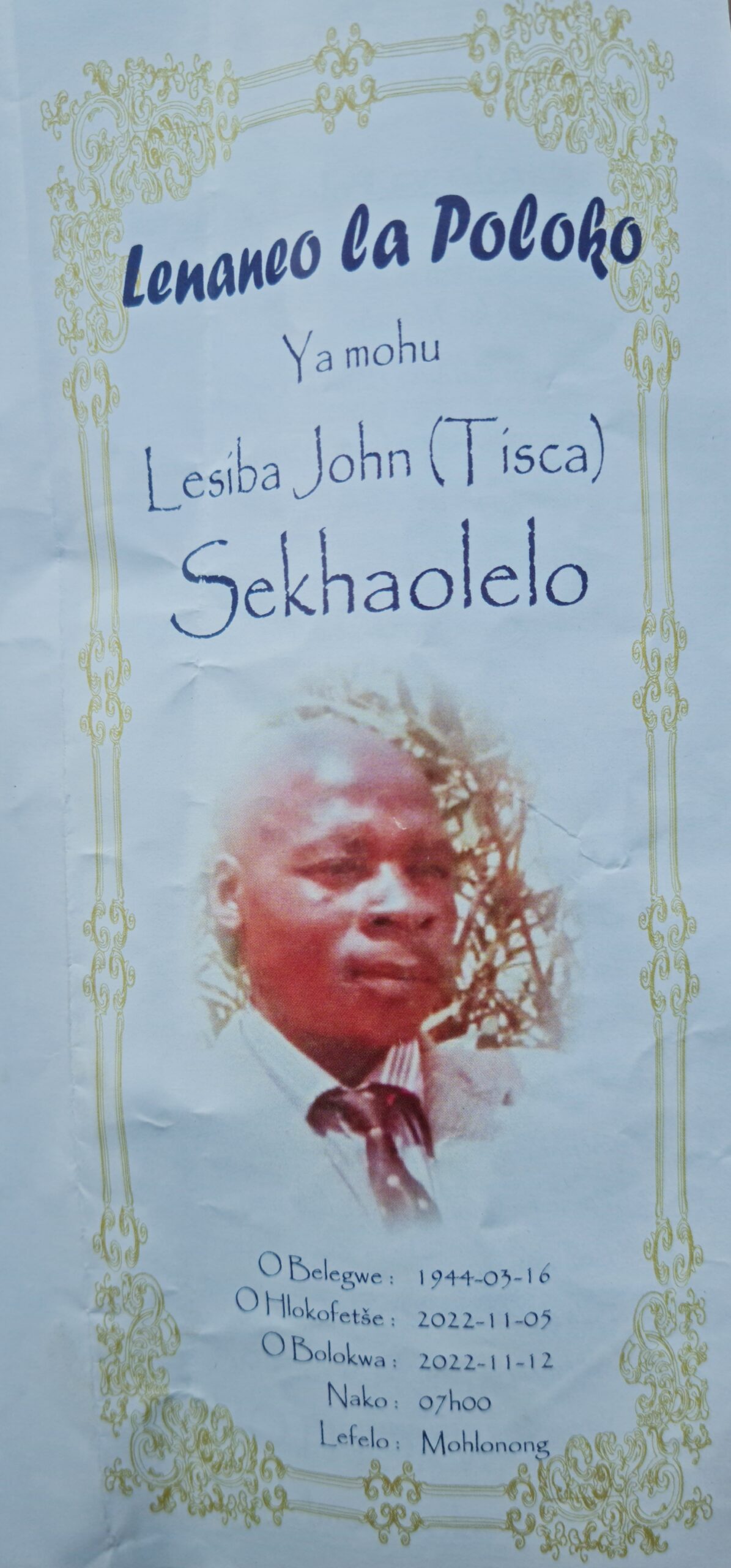 Teacher Sekhaolelo succumbed to illness on 5 November 2022. He was buried at the Mohlonong cemetery (Ga-Gwangwa), behind the police station where his beloved Black Swallows played many memorable games.